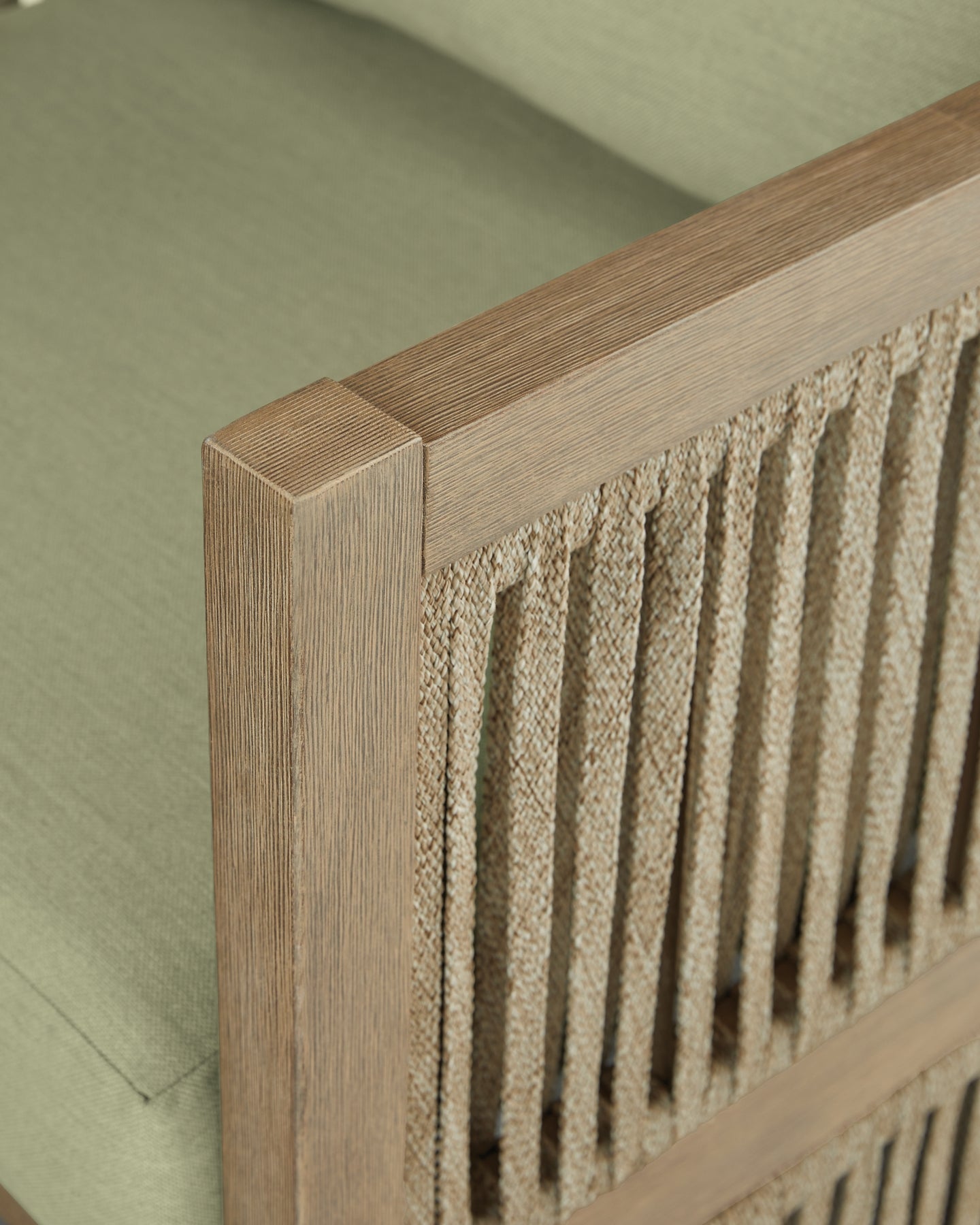 Round out your outdoor living space with the naturally beautiful look of wood. This cushioned lounge chair will serve up seasons of relaxation on your back deck or sitting pretty by the pool. Its gently curved open-weave design, crafted from eucalyptus wood and polyester rope, is the perfect merger of high fashion and lasting durability. Plush cushions are wrapped in cleanable, UV-resistant Nuvella® fabric, making stylish living a breeze.