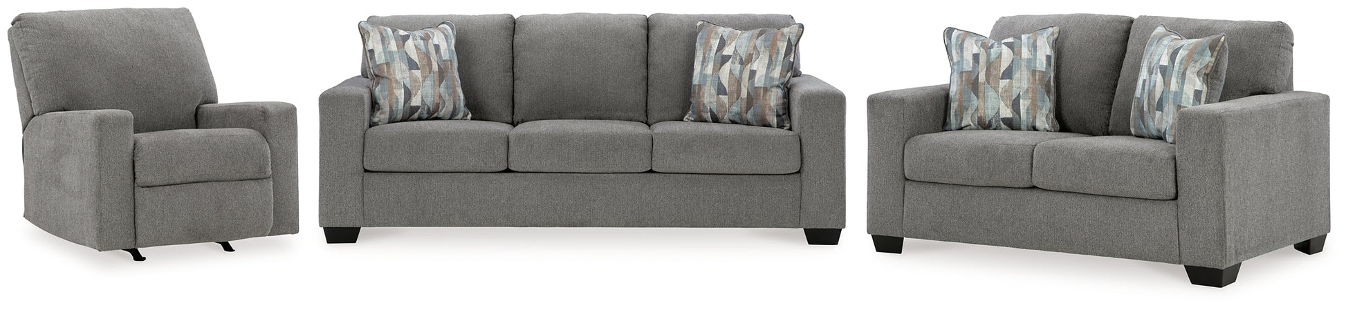 | Details | 5120538: Corner-blocked frame, Attached backs and loose seat cushions, High-quality foam cushions wrapped in poly fiber, Accent pillows included, Pillows with soft polyfill, Polyester upholstery, Exposed feet with faux wood finish, Platform foundation system resists sagging 3x better than spring system after 20,000 testing cycles by providing more even support, Smooth platform foundation maintains tight, wrinkle-free look without dips or sags that can occur over time with sinuous spring foundations, 5120535: Corner-blocked frame, Attached backs and loose seat cushions, High-quality foam cushions wrapped in poly fiber, Accent pillows included, Pillows with soft polyfill, Polyester upholstery, Exposed feet with faux wood finish, Platform foundation system resists sagging 3x better than spring system after 20,000 testing cycles by providing more even support, Smooth platform foundation maintains tight, wrinkle-free look without dips or sags that can occur over time with sinuous spring foundations, 5120525: Pull tab reclining motion, Gentle rocking motion, Corner-blocked frame, Loose seat and attached back cushion, High-quality foam cushions wrapped in poly fiber, Polyester upholstery, | |